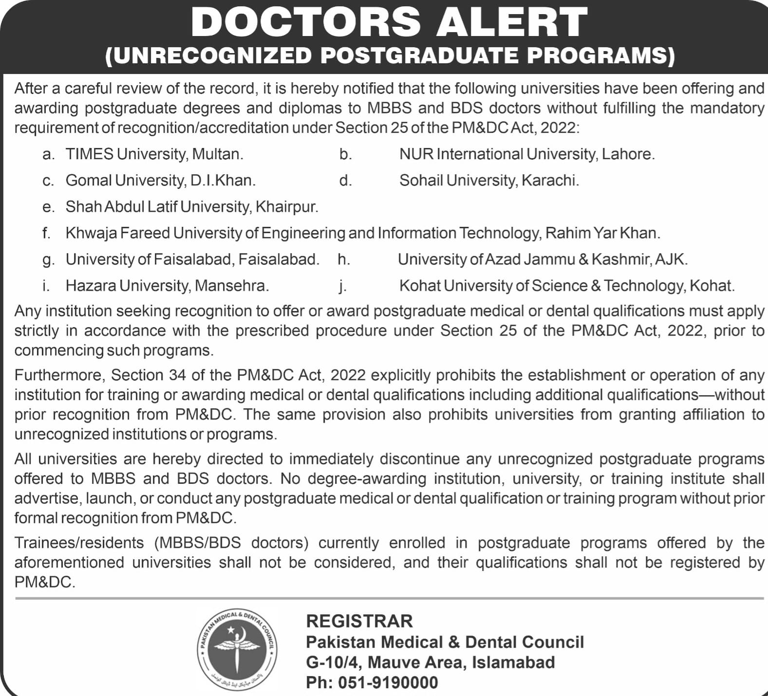 Doctors Alert: Unrecognized Postgraduate Programs in Medicine & Dentistry