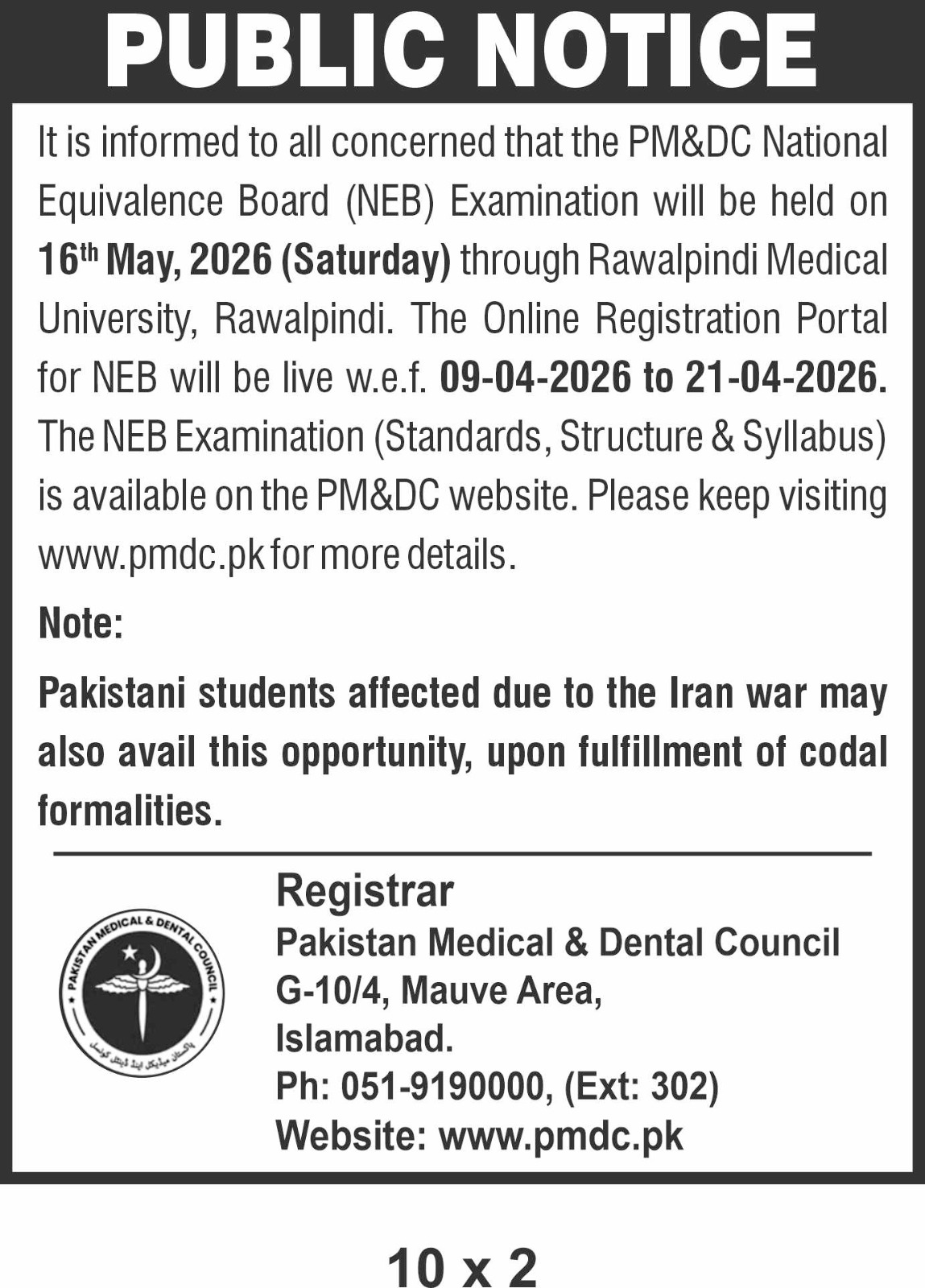 Click HereAn interactive portal for the Registration of NEB & MDCAT